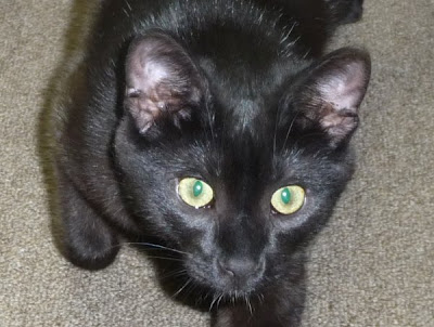 Lin mentioned “Gotcha Day.” Now I’m confused. It was the morning of December 4 of last year and we were expecting the first big storm of the winter. Sylvia and I had decided to bring the one cat — just a kitten — living in the barn into the house. We did not expect him to survive alone through the winter. His life expectancy soared when I carried him into our house. Midnight started a new life.