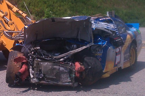 I saw that car afterward.  The front ended up behind the rear tires.   It was only good for scrap metal.  Nothing was left for salvage.