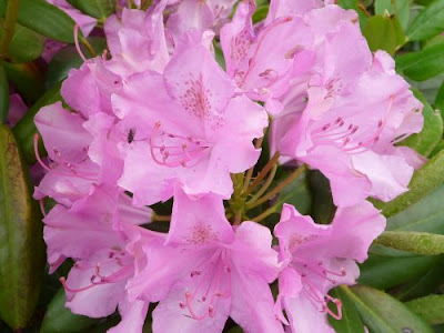 The rhododendron grows a few feet from the well head.  When we first moved here (11 years ago), there was an azalea growing very close to this.  Evidently, they were placed there temporarily.  Several plants around here placed that way.  Unfortunately, the man who first owned this house died unexpectedly.  He was planning to start a nursery at this location.  It was also unfortunate that by the time we arrived (third owners), the two plants were intertwined.  As you can see, the rhododendron is now “king of the hill.”