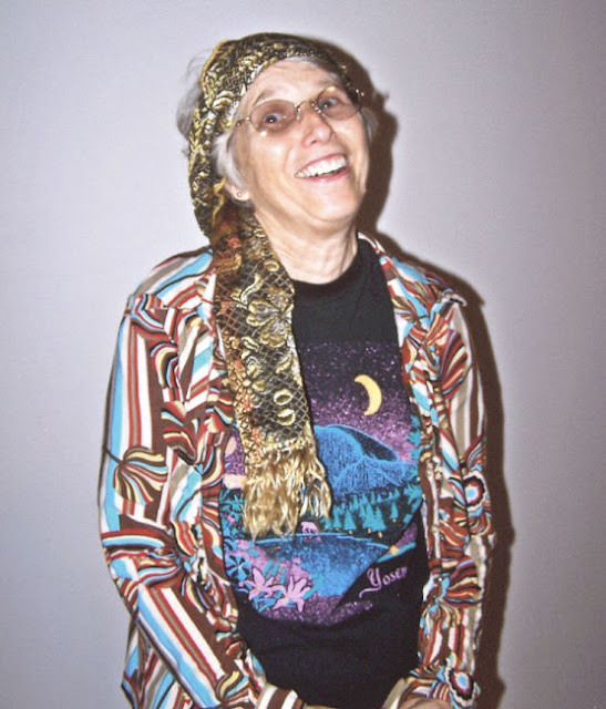 Did I mention that it is a ton of fun? The leaders were all tricked out in wild clothes and with hair to match. Steve, the lead guitarist had socks on his arms that looked like his arms were covered with tatoos. He also wore a wig over his short hair. The hair of the wig fell over his shoulders and down his back.
