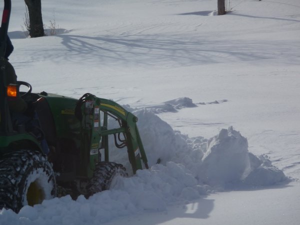 That’s when I got stuck. There was a sheet of ice between the snow and the driveway. In other words, no traction for my tractor. I had to dig my way free. It took quite a while and several attempts.