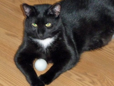 One of Midnight’s favorite toys is a ping pong ball. He can bat it and it goes flying with him chasing at full speed. What a neat sound it makes bouncing on the laminate floor, against the mop board or ricocheting off the furniture.