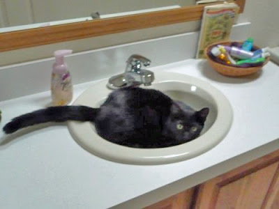Sherpa loves to "hide" in the bathroom sink. Silly kitty.