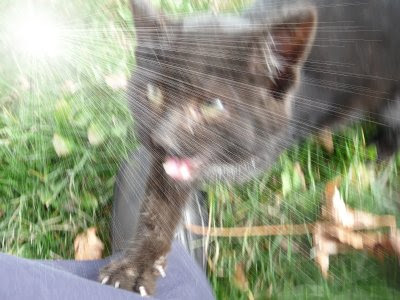 I loved the tail (tale) of Midnight. Hope to see more of him and his Secondary Roads adventures. Looks like he has a very skinny, scrawny, bald friend wearing a few tatters and bite marks. [She's talking about his stick — not me] He's a cute kitty who has found himself a good home. Connie