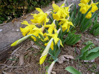 Daffodils are in full bloom. It took patience to capture this shot. The wind was very strong on this day, as it has been for several days now. There are also some miniature daffodils in the flower beds too, but the wind blows them around too much for me to capture a good image.