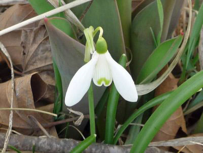 The snowdrops grow on the west side of the barn. For that reason, they are late to bloom.